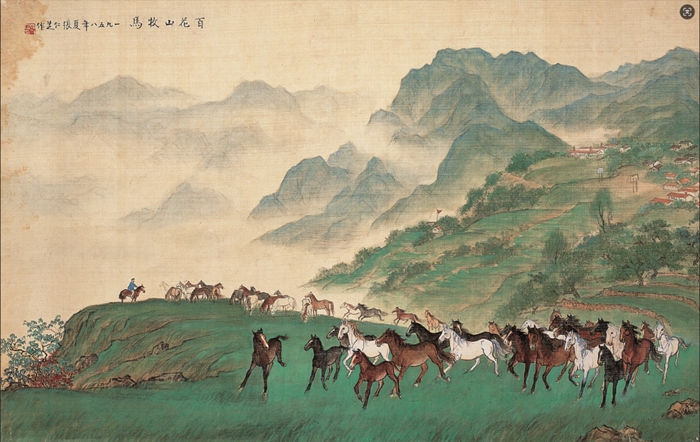 百花山牧马 张仁芝 47×74cm 绢本设色 1958 北京画院藏