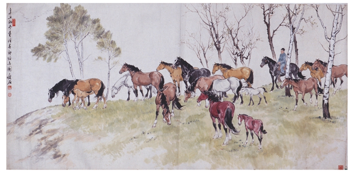 京郊牧马图 尹瘦石 99×203cm 纸本设色 1961 北京画院藏