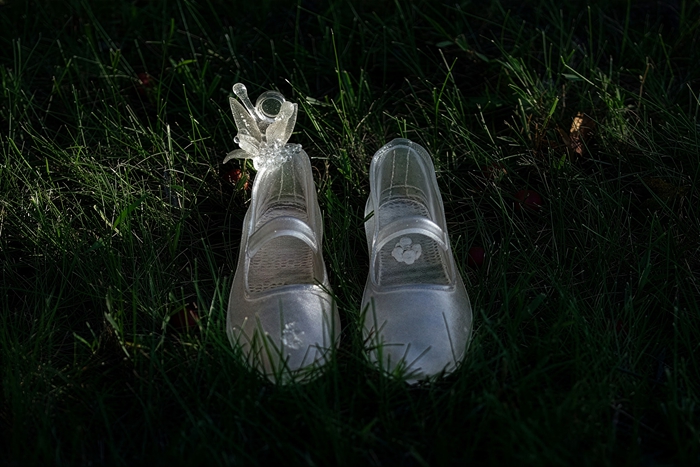 作为杜蒙艺术旅程行至何处的一种优雅指示,《前方有岔路(顺时针)》占据了展览的一席核心位置。这件作品是“本心”的具象呈现。正如她所称的那样,“小白鞋”的摆放中蕴含着一种安静而笃定的自信:沉思而审密,冷静而果决。只需明白,无论选择哪一条路径,“分岔从不被评判为更好或更坏”。在此,玻璃以其最为熟悉的形态出现,强调敏感易碎的本质。将这一媒介恰当地塑造成一件刻意保持小尺度的物件,最终柔化了展览整体的棱角,抵消了玻璃材料常见的密集与锋利的呈现方式。