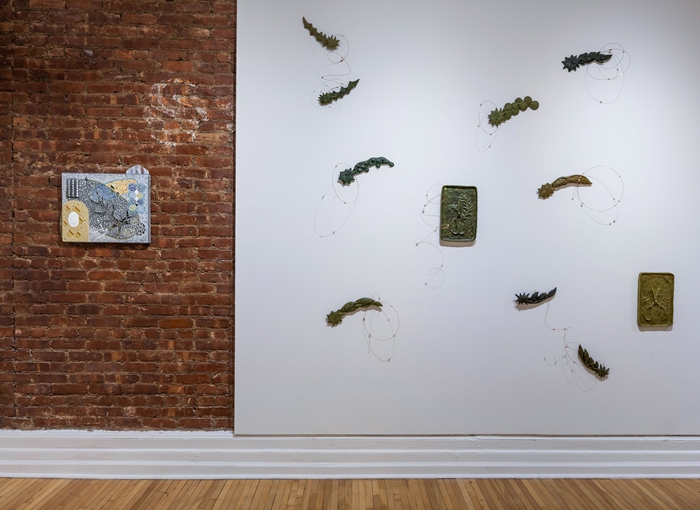 杜蒙的创作既顺应生长的内在本性,又与之保持距离;一种通常拒绝可变性的存在,在此突然既断裂又呼吸。用于马赛克创作的玻璃切割过程,是艺术家有意识地打破材料原有形态的行为,与脆弱物体在外力作用下自然产生的破裂纹理形成对照。然而,人为介入的塑形过程本身要求创作者对材料怀有敬意,并具备深厚的理解,而这一点在她的作品中无疑尤为可贵。