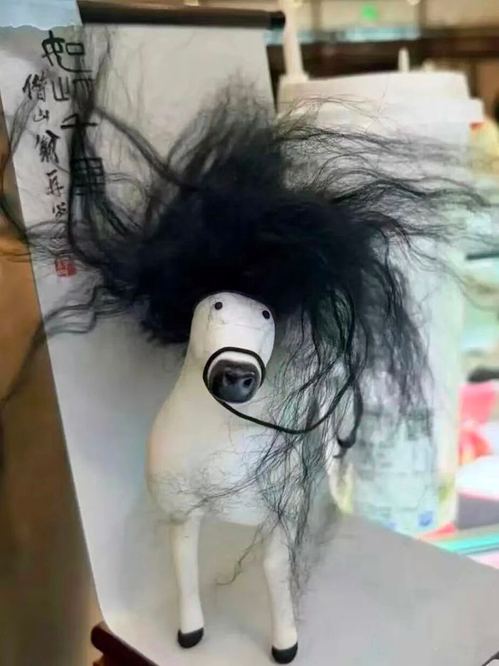 要说最近突然“火”出圈的一匹马,应该是这匹“潦草小马”了。这款北京画院与淄博小虾米软陶艺术馆联手打造的马年文创产品以其“潦草又自由”“清澈中透着疯癫”的形象,精准击中了当代年轻人的内心。网友笑称“像极了周一早上的我”“头发凌乱但始终向前奔”。针对这凌乱的发型,产品还附赠了发卡、皮筋,鼓励用户为小马DIY发型。