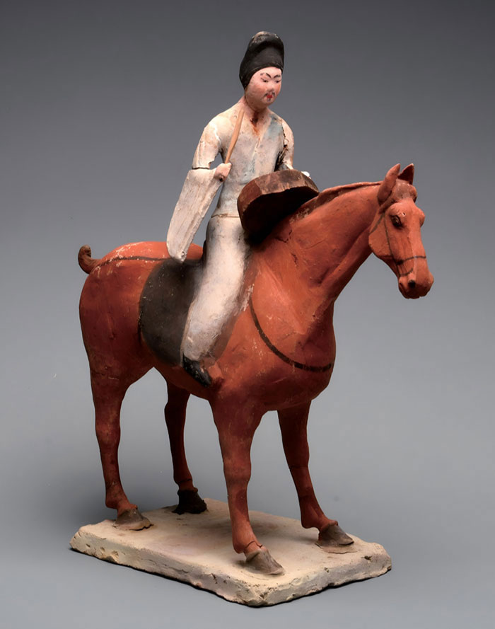 骑马击鼓俑,唐代,2019年甘肃省武威市天祝县祁连镇岔山村吐谷浑慕容智墓出土