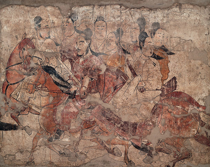 “鞍马游骑图”壁画,北齐,太原市王郭村娄睿墓出土