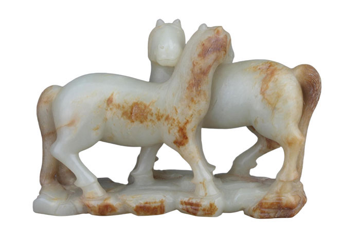 圆雕青玉双马 清 河北博物院藏