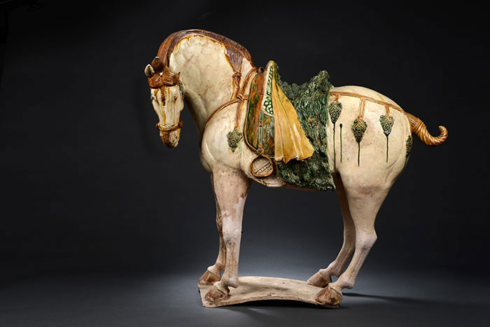 本展是第十五届全运会马术比赛的配套文物展览,共呈现陕西唐三彩艺术博物馆收藏的60件唐代文物,包括三彩舞马俑、彩绘打马球俑、仕女骑马俑等,剖析马在唐代政治、军事、体育等领域的重要地位,反映盛唐开放进取的时代气质。