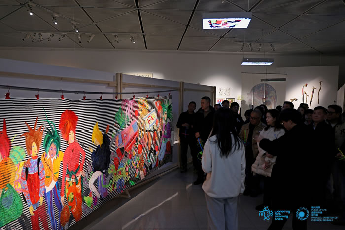 四川省文化和旅游厅公共服务处副处长崔宏岳,四川省文化馆馆长李琳,四川省艺术研究院副院长张垚,四川音乐学院艺术学理论与管理学院副院长、教授廖勇,四川省文化和旅游厅联合党委梁继乾,本次展览学术顾问、中央美术学院设计学院教授李玉峰,本次展览学术顾问、云南大学艺术与设计学院教授管郁达,以及参展艺术家袁蓉荪、何利平、张晓、夏海瑜、阿土培等参加开幕式。开幕式由四川省文化馆副馆长熊强主持。现场嘉宾云集,共同见证了这场旨在推动群众文化与当代艺术深度融合的“群众共游记”。