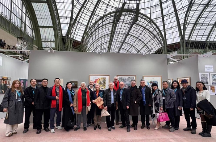 当地时间2月12日下午,“第236届法国艺术家沙龙——中国艺术家邀请展”在法国巴黎大皇宫开幕。来自中法两国政界、文化界、艺术界的嘉宾及中法媒体代表齐聚一堂,共同见证中国当代艺术再次亮相欧洲重要艺术平台,为中法文化交流注入新的活力。