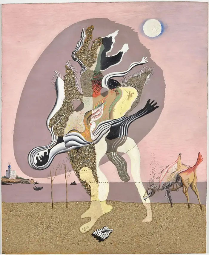 萨尔瓦多·达利,《腐烂的驴》, 1928年, 木板上油彩、沙、砾石拼贴,61 x 50 cm© Salvador Dalí,Fundació Gala-Salvador Dali / VEGAP,Madrid 2025 图片来源:北京民生现代美术馆微信公众号