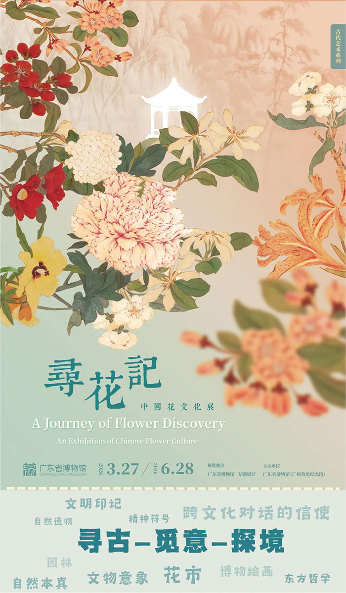 以“寻古一觅意一探境”为脉络,展览将带你从新石器时期彩陶上的形象初绽,行至宋元瓷器玉器的清雅风范,于“东方植物志”《百花图》中感受自然本真,再从十二月令花卉的文物意象里,读懂时序流转的东方哲学。展览还聚焦生机盎然的岭南,透过园林、花市、博物绘画等,呈现花卉如何成为中西文明交流的优雅信使,解读中国花文化背后的审美追求与生命哲思。