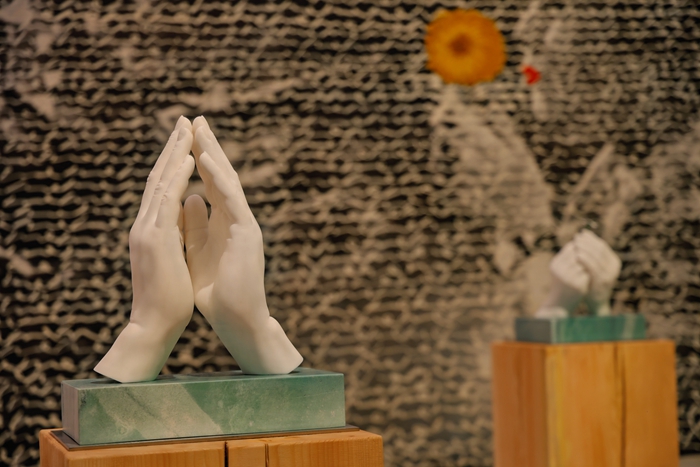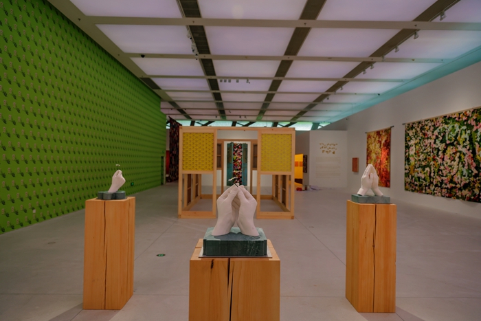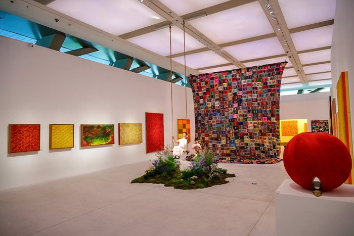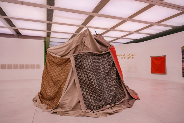 他介绍说,第一个单元“我的母亲和我的家乡”,是艺术的起点,关乎她从哪里来、内心最柔软的部分是什么;第二个单元“花的力量”,则从个人情感走向更广阔的生命态度,以花表达善意、希望与抵抗苦难的力量;第三个单元“烈日下的行走”,则将叙事置入更大的语境中,触及全球化与现代性背景下的战争、难民与个体尊严等问题。在策展结构上,展览并非线性推进,而是通过空间与场域的变化传递情绪——从第一单元的温暖与私密,到第二单元的明亮与开放,再到第三单元的深沉与反思。期待观众通过感受到这种节奏变化时,理解艾敬作品背后的叙事逻辑。