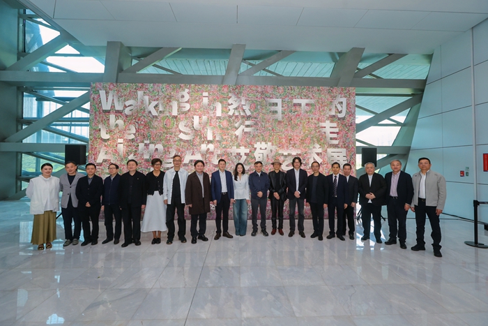 开幕式在打击乐声中拉开序幕。中国非物质文化遗产保护协会会长王晓峰,中央美术学院院长林茂,中国美术家协会副主席庞茂琨,西安美术学院院长朱尽晖,北京大学艺术学院原院长彭锋,广州美术学院院长范勃,吉林艺术学院院长李书春,中国科学院院士、南方科技大学医学院院长王松灵,浙江大学艺术与考古学院副院长王小松,中国美术家协会副主席李象群,艺术批评家、理论家尹吉男,四川美院艺术人文学院教授、本次展览策展人何桂彦,深圳市当代艺术与城市规划馆馆长颜为昕等嘉宾出席开幕式。