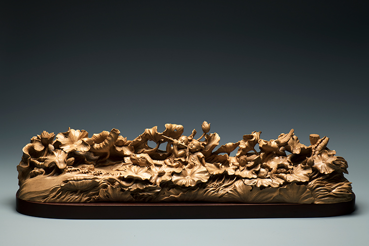 《和和美美》,虞金顺,木雕,73×18×21cm,2014