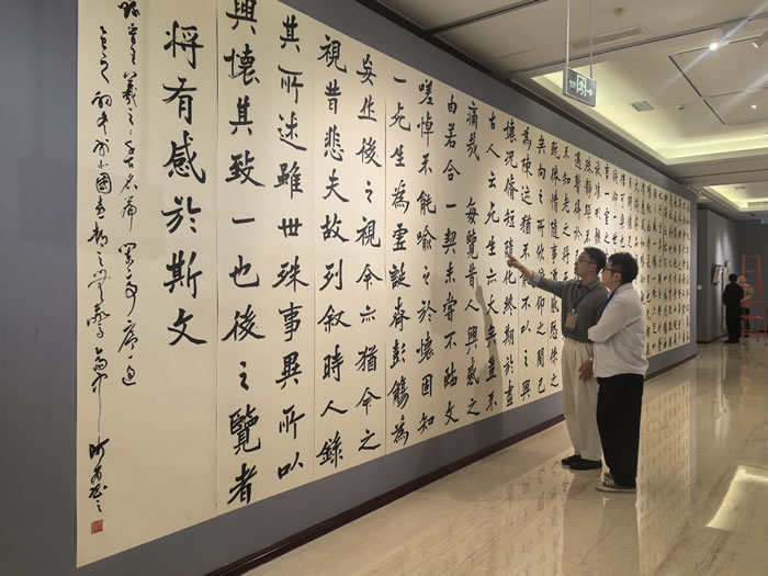 书法爱好者观看展品