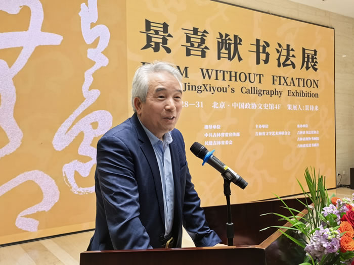 为传承中华优秀传统文化,展现当代书法艺术创新成果,3月28日,“有象无相——景喜猷书法展”在北京中国政协文史馆开幕。本次展览由吉林省委宣传部、民进吉林省委员会指导,中国书法家协会、中国国家画院、民进中央开明画院支持,吉林省文学艺术界联合会主办,吉林省书法家协会、吉林省政协书画院、吉林省民进书画社承办。