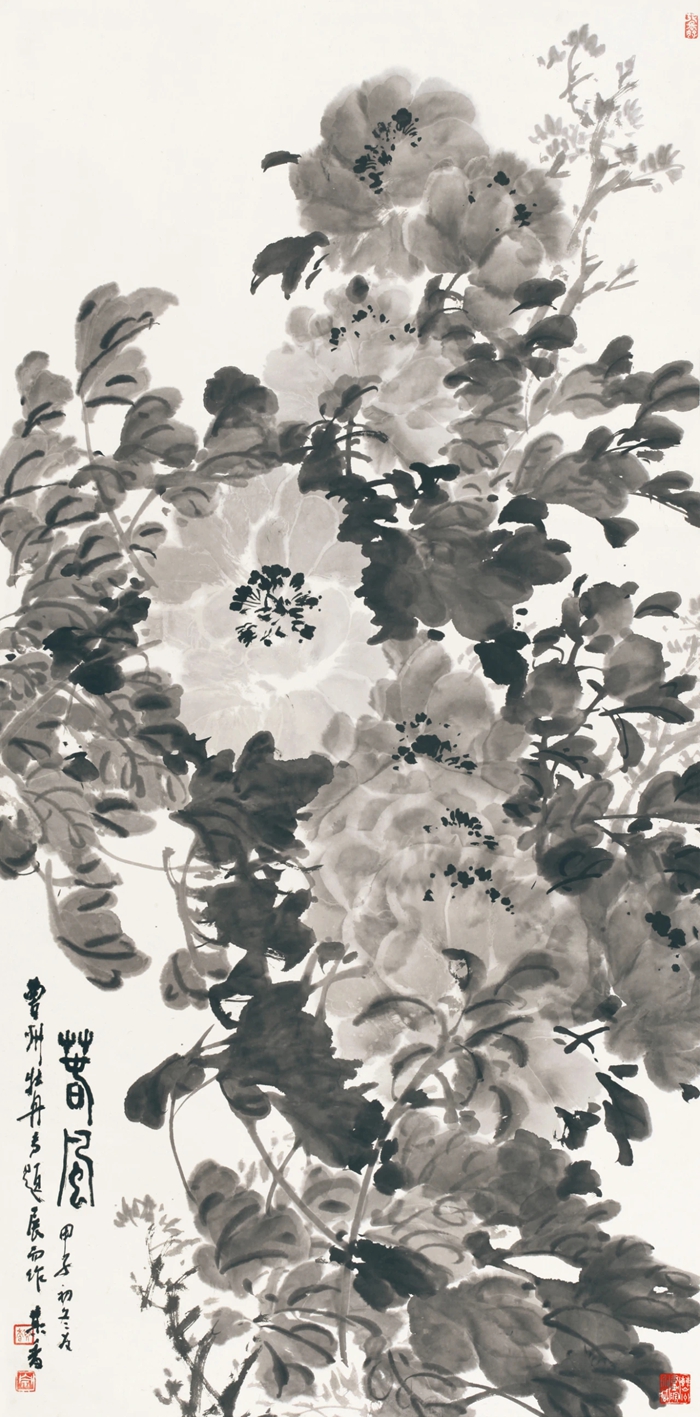 展览以“古今辉映、文脉赓续”为脉络,中国美术馆精选21件馆藏珍品,构成跨越宋、明、清至近现代的牡丹艺术时空长廊。宋代院体画中,工笔牡丹勾勒细腻、设色雅致,尽显写实精神与雍容气象;明代吕纪《牡丹白鹇图》等名作笔触精工,暗藏章法韵律;清代作品则兼具工笔的细腻与写意的洒脱,融合牡丹的富贵之姿与文人的清雅情怀;近现代囊括吴昌硕、齐白石、黄宾虹、张大千等大师代表作品等大家之作,更推动牡丹题材与多元艺术理念碰撞交融,件件皆为承载中华美学精神的艺术瑰宝。