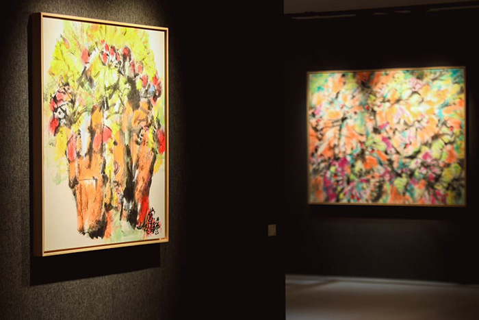 移步至花卉大写意系列,面对一幅幅色彩浓烈、形态高度概括的彩墨花卉,艺术家冯钟云分享了他的创作理念:“我画的不是具体的某朵花,而是花开的‘韵’致和生命力。”这种将西方抽象绘画的色彩构成与中国“气韵生动”美学相结合的手法,赋予了传统花卉强烈的当代精神性。
