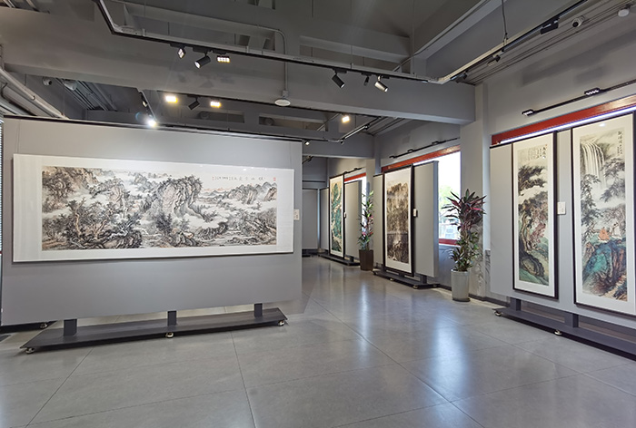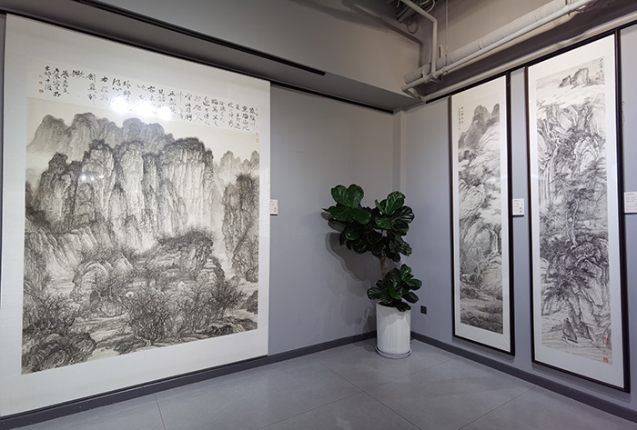 展览汇聚了刘彦水多年来创作的山水画精品,其作品既传承了五代、宋元以来的艺术精髓,取宋人丘壑之严谨、元人笔墨之萧散,又融入明清诸家之气韵,更彰显时代精神。观其画作,峰峦出没、云雾显晦、烟林森渺、溪桥渔浦,或雄浑壮阔、或清雅幽远,千笔万线间尽显自然拙朴的生命力,既展现了“峰峦浑厚,气势雄强”的全景式山水气象,又传递出人与自然和谐共生的东方智慧,恰如古贤所言“方寸千岩,足以澄怀味象;咫尺万壑,无异半亩方塘”。