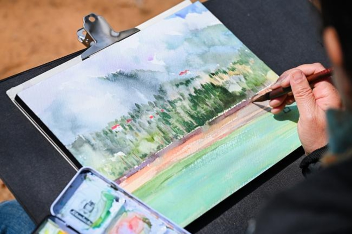 “春有锦绣谷花,夏有石门涧云,秋有虎溪月,冬有炉峰雪。”庐山自古为文人墨客流连之地,兼具雄奇山水与深厚文脉。庐山春日尤显妩媚。艺术家们深入庐山核心景区及周边文化地标开展写生采风。