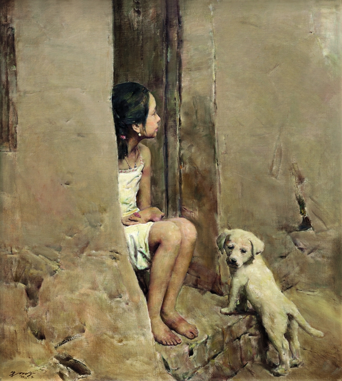 《女孩与狗》郭北平 布面油画146cmx130cm 2011年