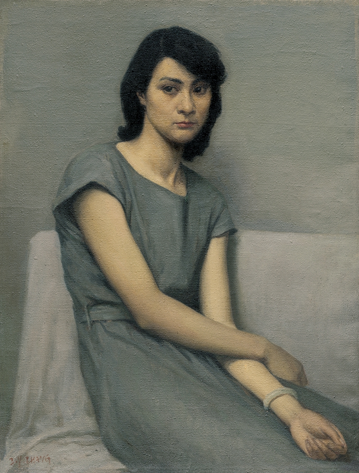 《穿灰色裙子的姑娘》张祖英 布面油画 78cmx59cm 1987年