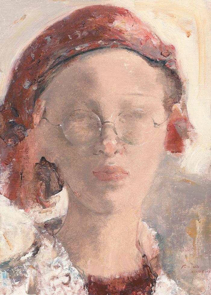 《戴眼镜的女孩》郭润文 布面油画 35cmx25cm 2005年
