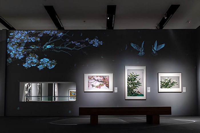 在展览花鸟作品展区,刘墉的花鸟创作从“观物精微”的写生和分析入手,用科学的方法敏锐观察,用细致的笔触翔实记录,于分毫间掌握物形、深入物象。