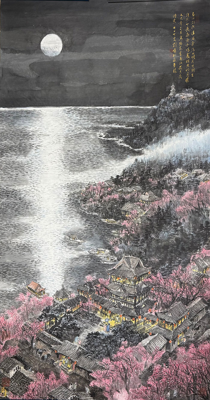 “可以观、可以游、可以居”是刘墉秉持的艺术创作理念,展览现场展出的多件大尺幅风俗题材画作,记录了刘墉儿时对家乡的记忆。于他而言,绘画不仅是定格景致的空间艺术,也是承载岁月的时间艺术,亦是安放情怀的归处。凭借深厚的文学造诣,刘墉总在笔墨间巧融诗的意境、散文的肌理与小说的况味。他写童年院子、喧嚣市井、清寂巷弄,写朦胧月色、迷离灯火,暮霭炊烟,这些世间百态和人间风物后来被他挪移摹画于画卷之上,此刻正栩栩如生、声情并茂地重现在观众面前,艺术家以笔墨绘就出个体生命记忆背后那幅栩栩如生的社会生活与时代画卷。