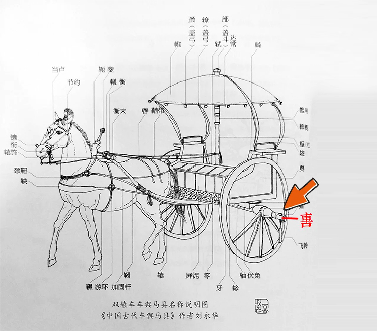 軎和辖位置说明图(图片来源:《中国古代车舆马具》 作者刘永华)