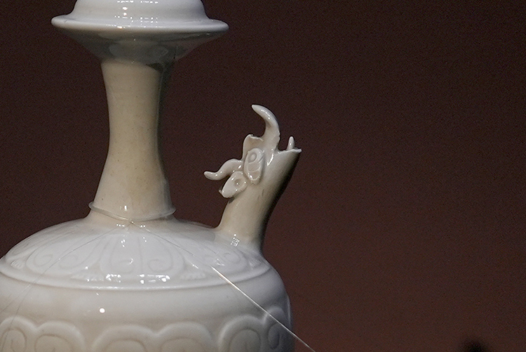 “白釉莲纹龙首净瓶”细节(摄影:兰红超)
