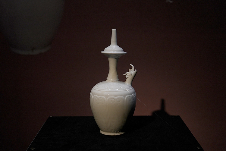 “白釉莲纹龙首净瓶”展出现场(摄影:兰红超)
