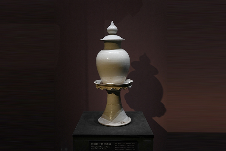 “白釉带托塔形盖罐”展出现场(摄影:兰红超)