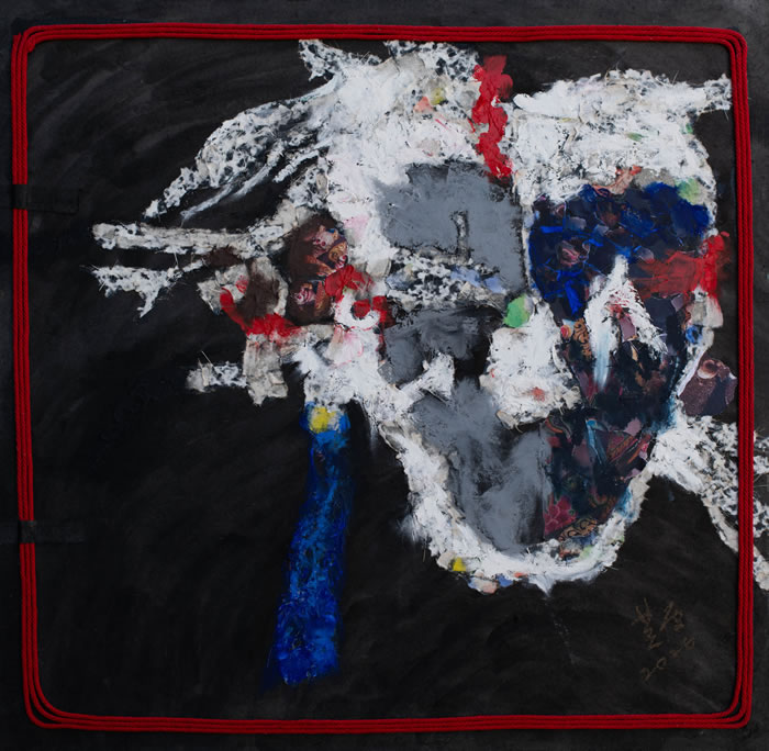 《躯》71X71cm,水彩丙烯拼贴,2025