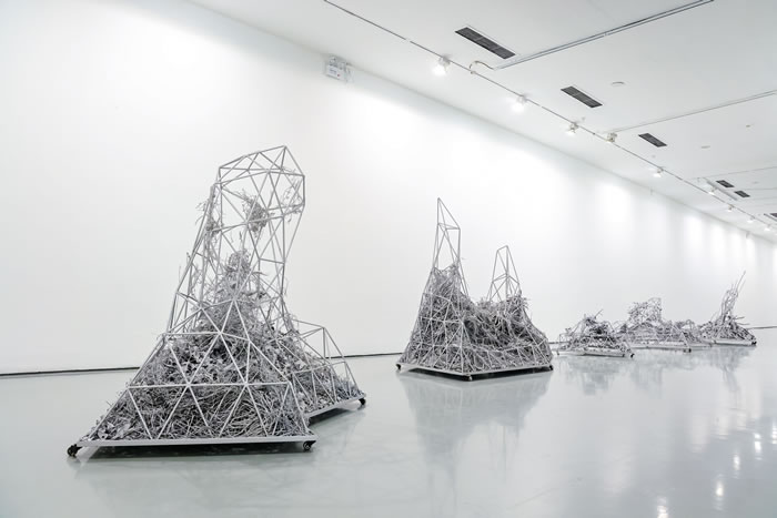 杨心广,《植物纪念碑》 2020;230x200x100cm;240x180x200cm;240x160x110cm;160x160x120cm;130x120x60cm;钢筋、植物、封闭剂、丙烯颜料