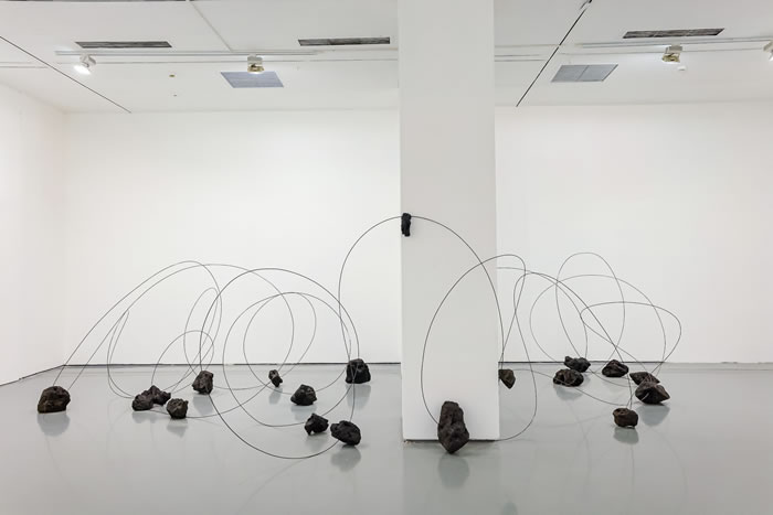 张琪凯,《盘桓》 2024;可变尺寸;火山岩,钢丝