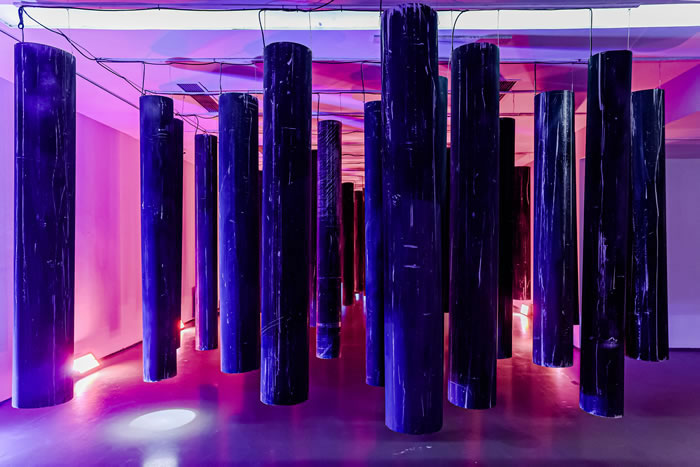 卢征远,《蟒》2022;尺寸可变;PVC、灯光、声控装置等