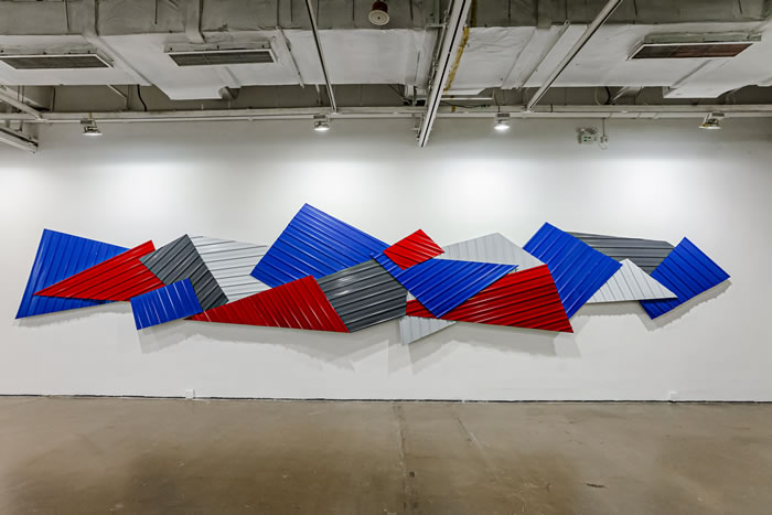 谭勋,《彩虹中国计划 —— 接缝》2026;1100×200cm;彩钢板、铆钉