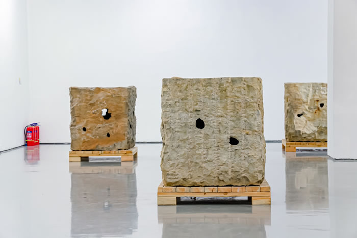 胡庆雁,《空立方》 2019-2020;106×130×100cm,110×130×110cm,104×120×96cm,109×126×105cm;青石