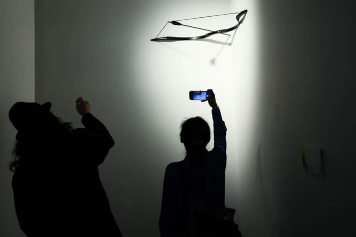 方二&孟瑾合作的新作以光敏树脂、金属与电缆构筑出一组感知场域,探讨都市空间与人类感知的交互边界;周文斗以一贯的幽默戏谑在物与空间的错位中建立新联结;谭勋的新作将社会现场的切片转化为空间中的观念锚点;张鼎以剧场性构建社会异化的舞台;廖斐在几何与认知之间探寻物质的内在秩序。